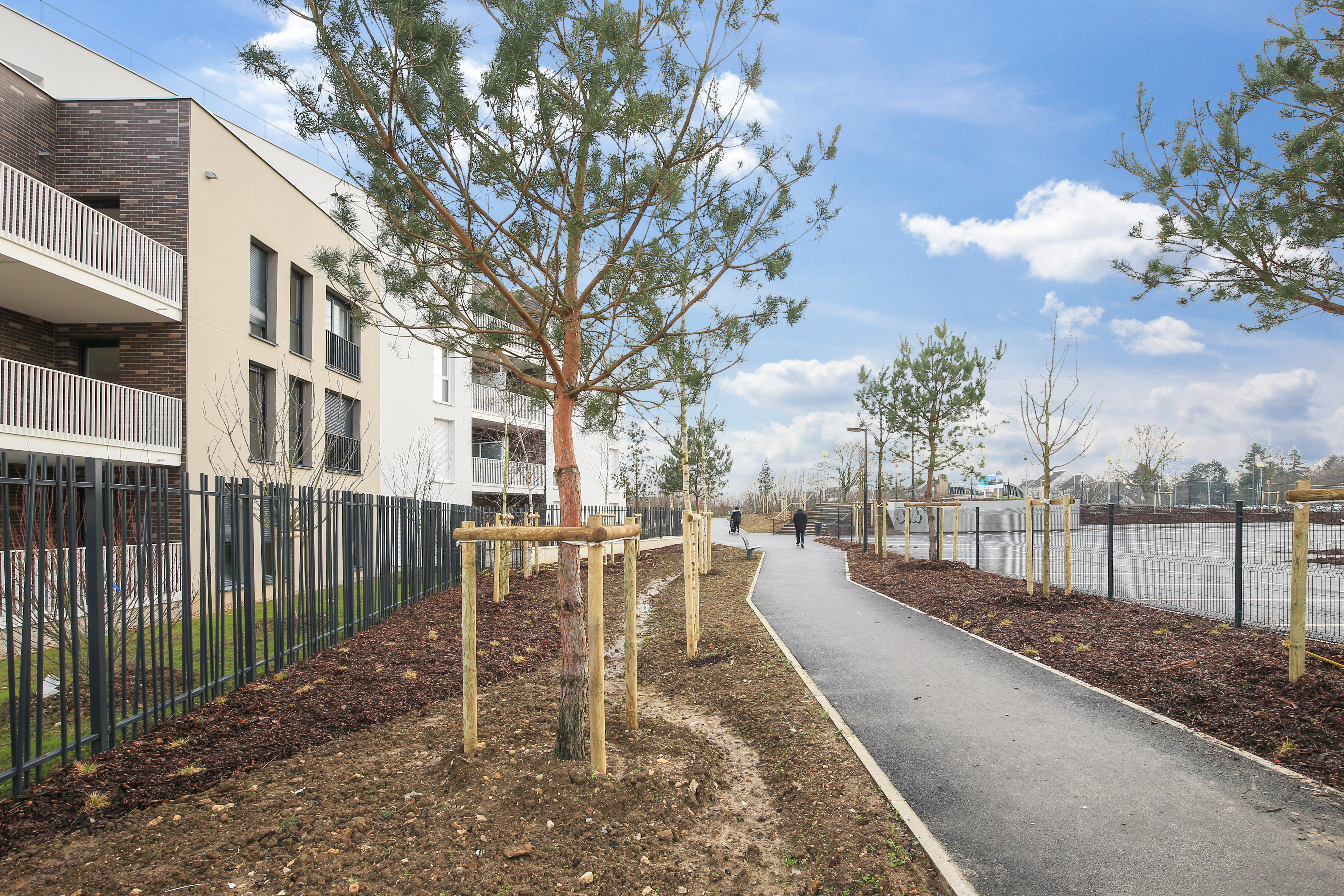 - Des espaces extérieurs de qualité et hautement paysagerscomprenantdenouveauxaménagements piétons permettant notamment un accès sécurisé à la gare RER.